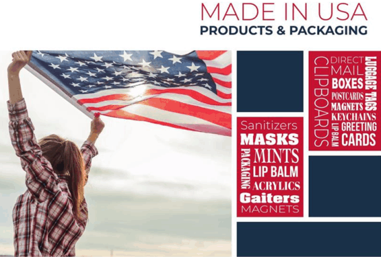 Made in USA Sanitizers - Acrylic Awards Key Chains & Phone Stands Personal Care & Amenities Mints Gum and Water Bottles Clipboards Lanyards & ID Cards Magnets Luggage Tags Direct Mail - Postcards & Greeting Cards Direct Mail - EZ-Box Packaging E-Flute Boxes Gloss & Matte Finish Boxes Sof Touch & Turned Edge Boxes Apparel & Gift Boxes Drinkware Packaging Insert Options |